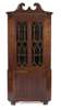 the swan-neck pediment above twin astragal glazed doors raised on a base with twin panelled doors, the whole raised on bracket feet