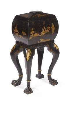 A 1930's Japanned casket on stand,