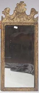 of early 18th century style, the rectangular plate enclosed by leaf and strapwork moulded frame with elaborately cresting carved with scrolls and centred by a stylised shell cartouche