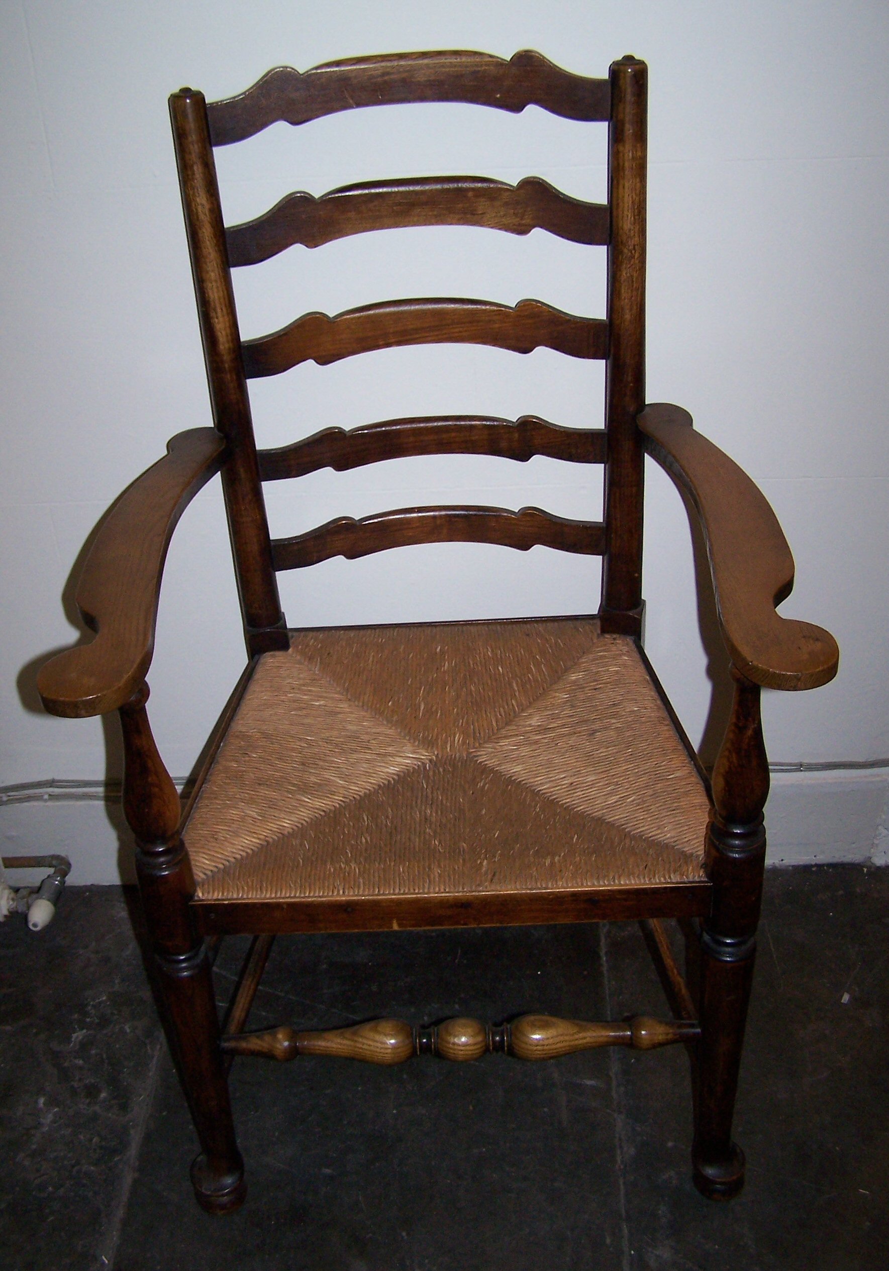 A set of six elm ladder back chairs,