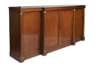 the breakfront top above a pair of central panel doors enclosing sliding trays, the single panel outer doors enclosing drawers and the whole flanked and divided by columns with gilt brass terminals, on a plinth base with a central drawers (2)188cm wide, 122cm high, 58cm deep and 253cm wide, 122cm high, 58.5cm deep