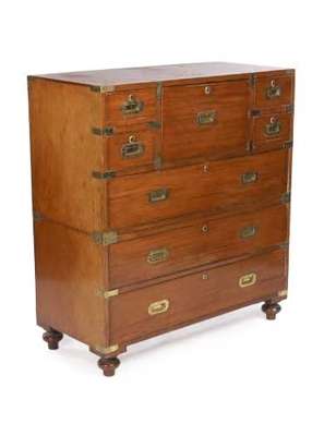 An early 19th century mahogany campaign secretaire chest,