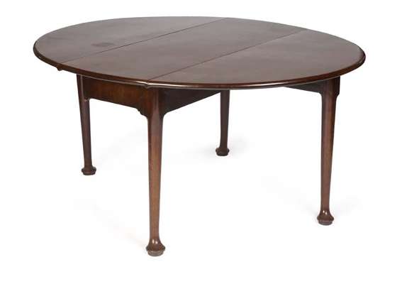 the oval top above a plain frieze on turned tapering legs terminating in pad feet