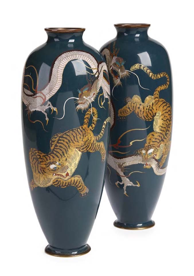 each decorated with a dragon and a tiger on a dark green ground (2)