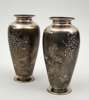 A pair of two colour metal Japanese baluster vases,