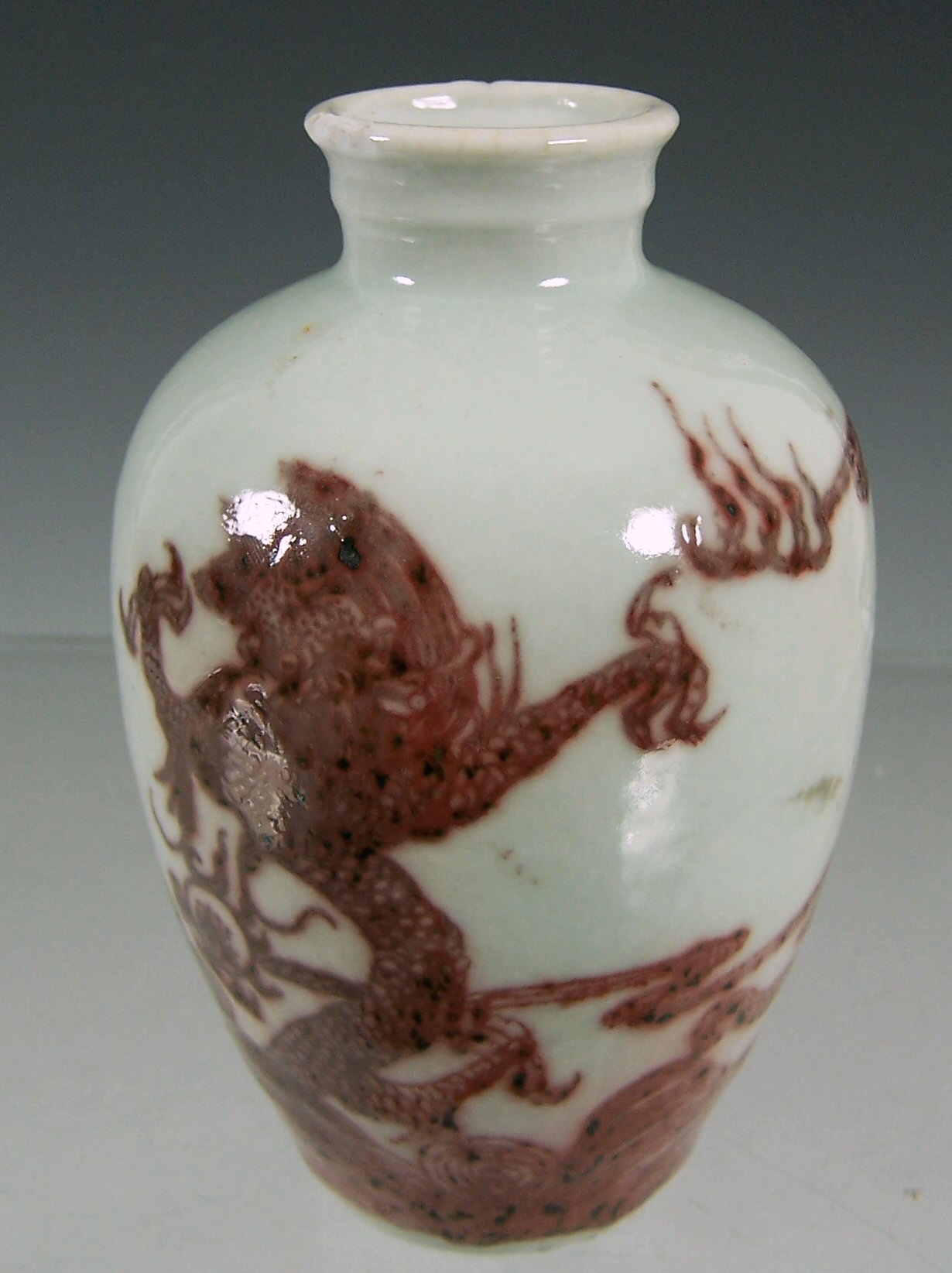 A small Chinese copper red painted baluster vase, Yongzheng mark,