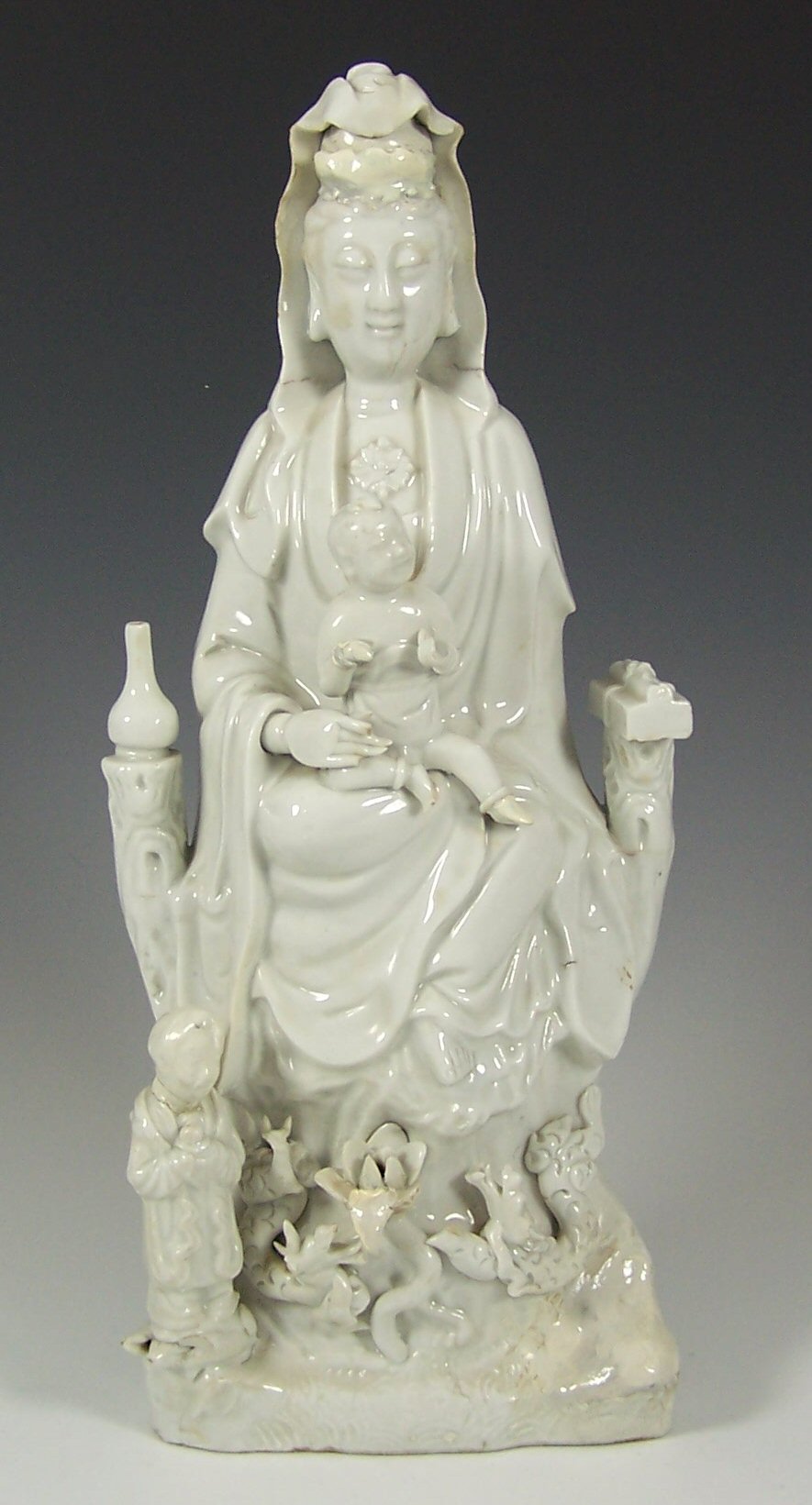 A Chinese blanc de chine figure of the seated Guanyin, late 17th/early 18th century,