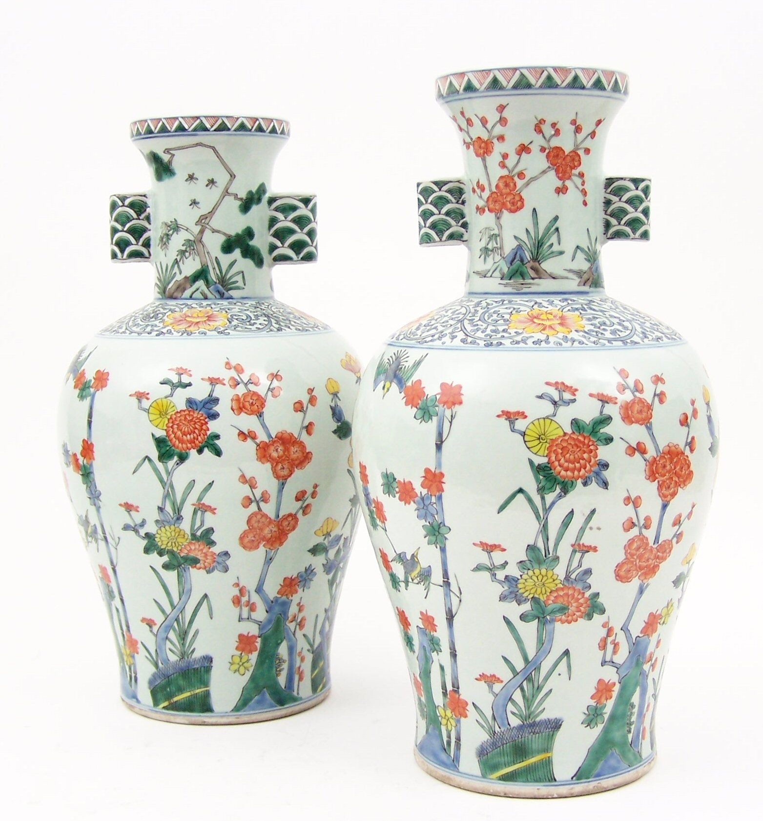 A pair of Chinese baluster vases in the Kakiemon style, 20th century,