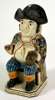 in the form of a seated male figure wearing a tricorn hat and holding a beer glass (one hand lacking)