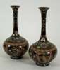 each with elongated neck above onion shaped body, the neck decorated with bead design above bands of floral and butterfly decoration, the body with a border of panels depicting dragons and exotic birds (2)