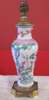 converted to a lamp, of baluster form, decorated with exotic birds and flowers in a landscape scene, spreading gilt foot on stand