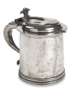 the domed cover with bifurcated scroll handle above armorial bearing with a pair of rearing horses and escutcheon with three saddles, inscribed 'The Gift of Mr John Sanyer - Late Master of this Company Anno 1695'19th Century