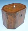 A George III satinwood, chequer strung and tulipwood crossbanded octagonal tea caddy,