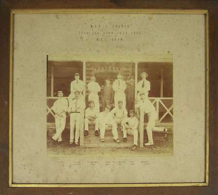 inscribed 'MCC v Grange/ 29th and 30th July 1885/ MCC Team'