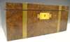 with fitted trays, 41cm wide; also a Victorian brass mounted burr wood and ebonised casket, of rectangular form, with brass drop carrying handles, on bun feet, 33cm wide (2)