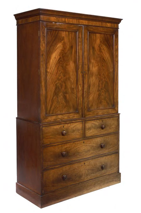 An early 19th century mahogany linen press,