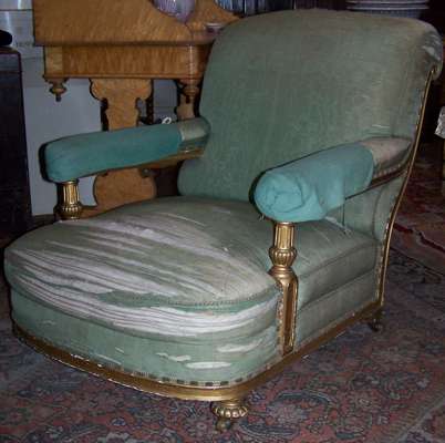 A late 19th century giltwood framed drawing room armchair,