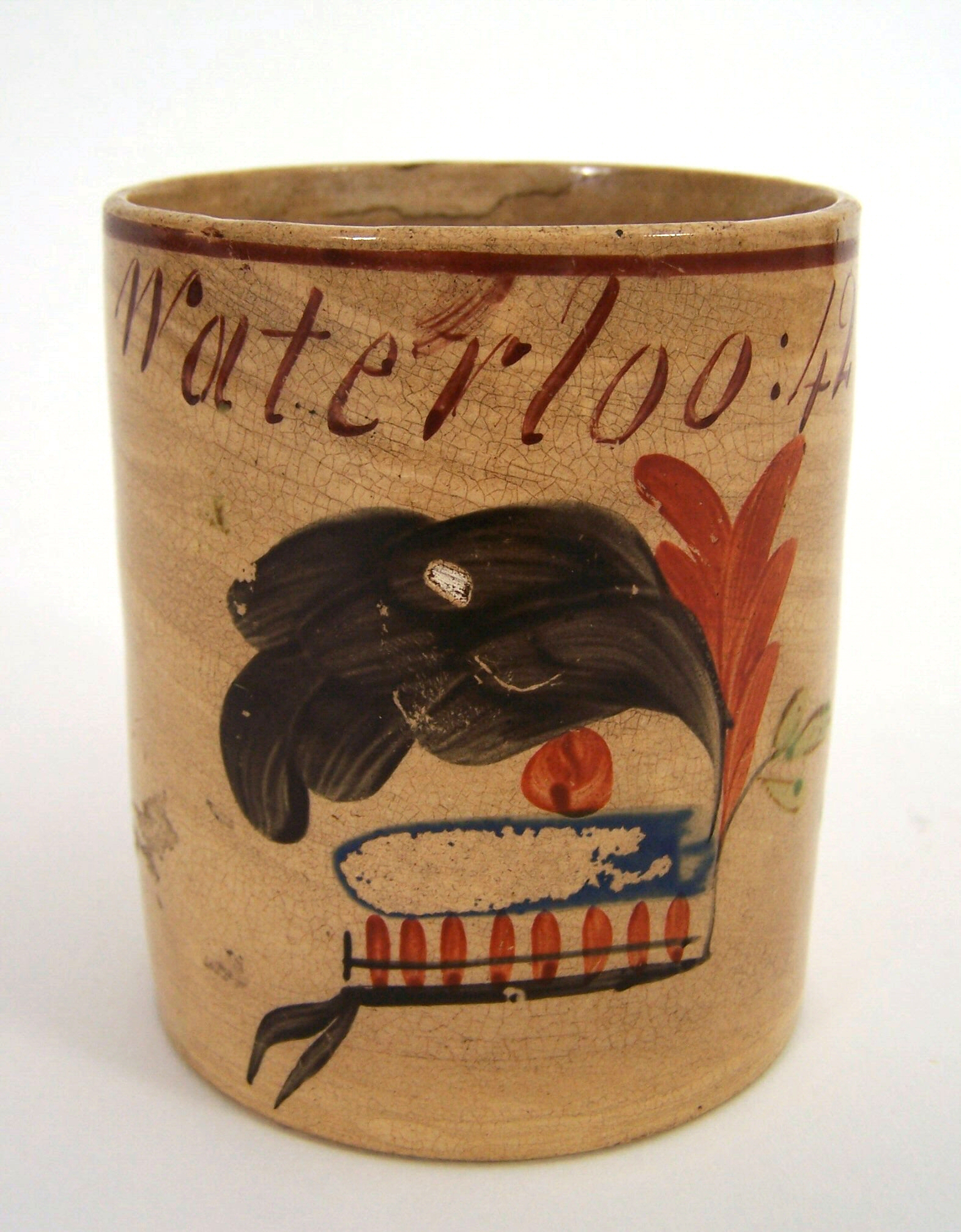A rare Scottish pottery mug commemorating the Battle of Waterloo,
