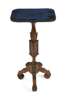 the velvet-covered top above triangular section baluster and panelled support on triform base with scrolling supports, embellished with scroll cast mounts
