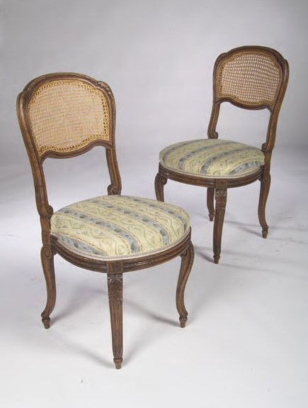 each with ribbon and leaf-carved moulded frames, the carved back above upholstered seat on carved cabriole legs (2)
