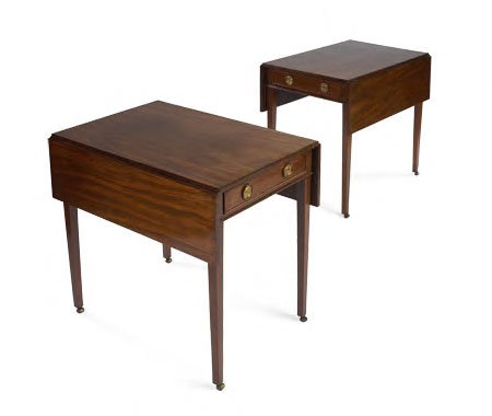 each with a well-figured rectangular top above a cockbeaded drawer with octagonal stamped ring handles, on tapering legs with barrel castors (2)