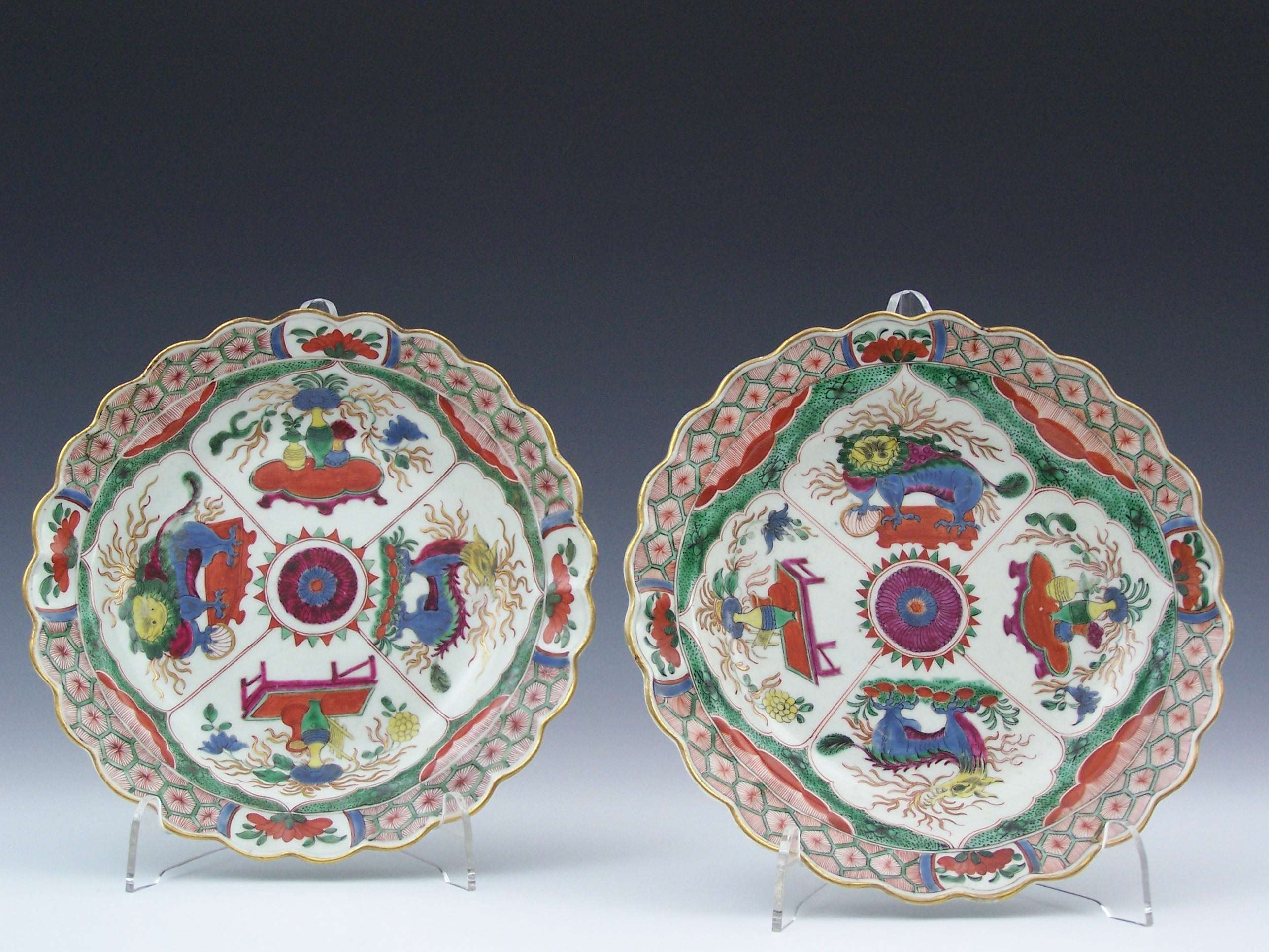 A near pair of late 18th century Worcester 'Bengal Tiger' pattern plates, circa 1755-75