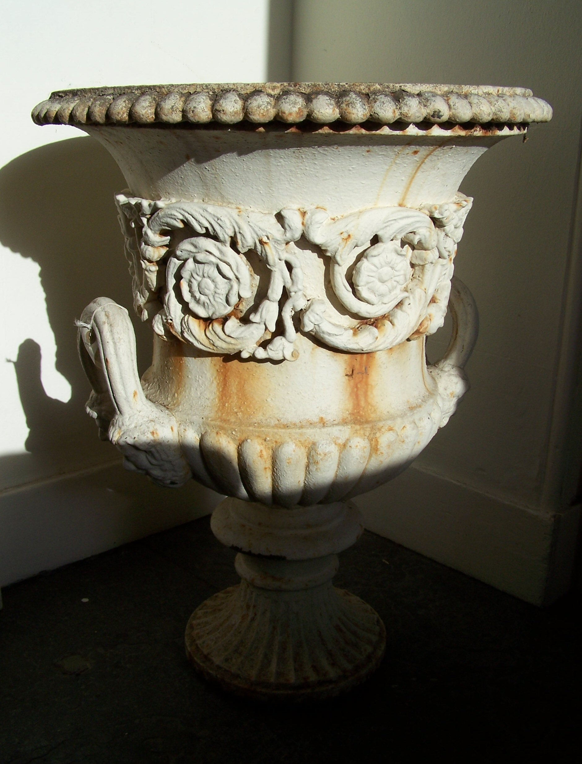 A pair of cast iron garden urns
