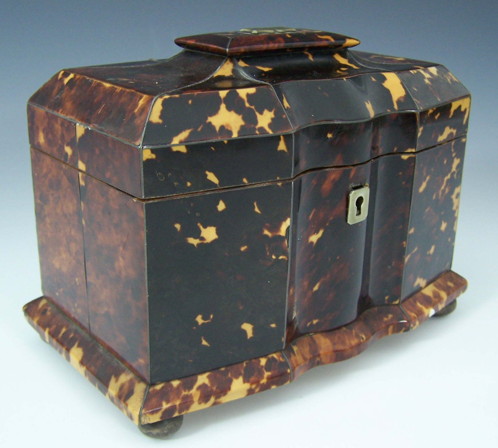 A Regency tortoiseshell veneered tea caddy