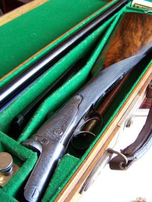 An Adams 12-bore backlock ejector side-by- side sporting shotgun