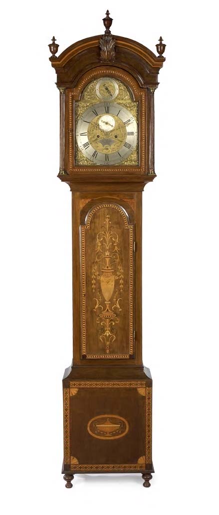 A late 18th century mahogany and marquetry-inlaid 8-day longcase clock By James Bonner, Aberdeen