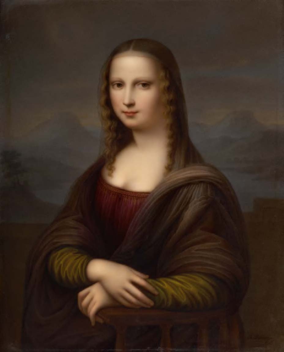 depicting a young woman with a landscape behind, after Leonardo da Vinci, signed Ch. Deininger, impressed sceptre over KPM and letter H, probably for 1908, and inscribed '15_12', unframed