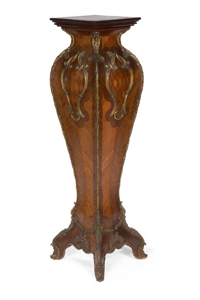 A late19th century walnut, kingwood and gilt metal mounted sculpture pedestal