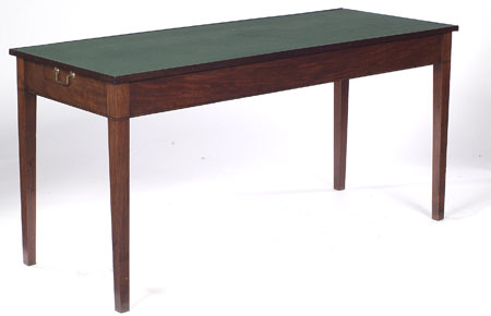 the rectangular top with baize surface above a plain frieze on square tapering legs