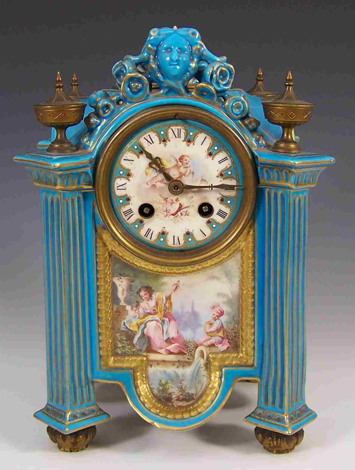A late 19th century Sevres-style mantel clock
