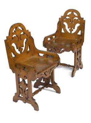 A pair of late Victorian oak hall chairs
