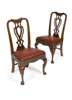 In the mid 18th century style, each with scrolled top rails and vase-shaped pierced splats above drop-in seat on front cabriole legs terminating in pad feet (6)