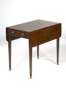 the rounded rectangular top above single frieze drawer opposing dummy drawer raised on square tapering legs terminating in brass caps and castors