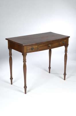 with full length frieze drawer and brass pull handles, on turned tapering legs