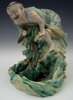 depicting Gamma Senin standing on a rock leaning over looking down at his three-legged toad which sits in a pond, painted in shades of green and yellow