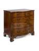 the shaped top with moulded edge above two short over three long graduated drawers, raised on bracket feet