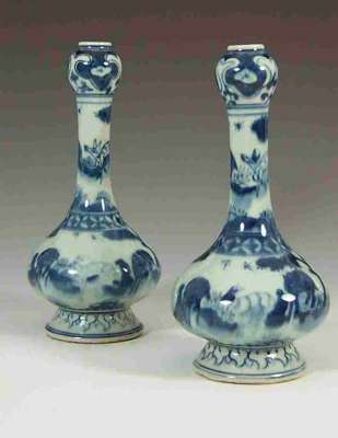 each with garlic bulb top above elongated neck decorated with deer in a landscape (2)