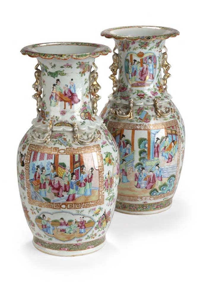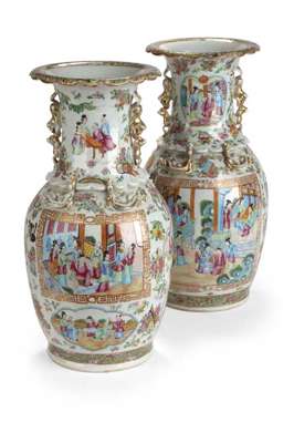 A matched pair of 18th century Chinese Canton vases
