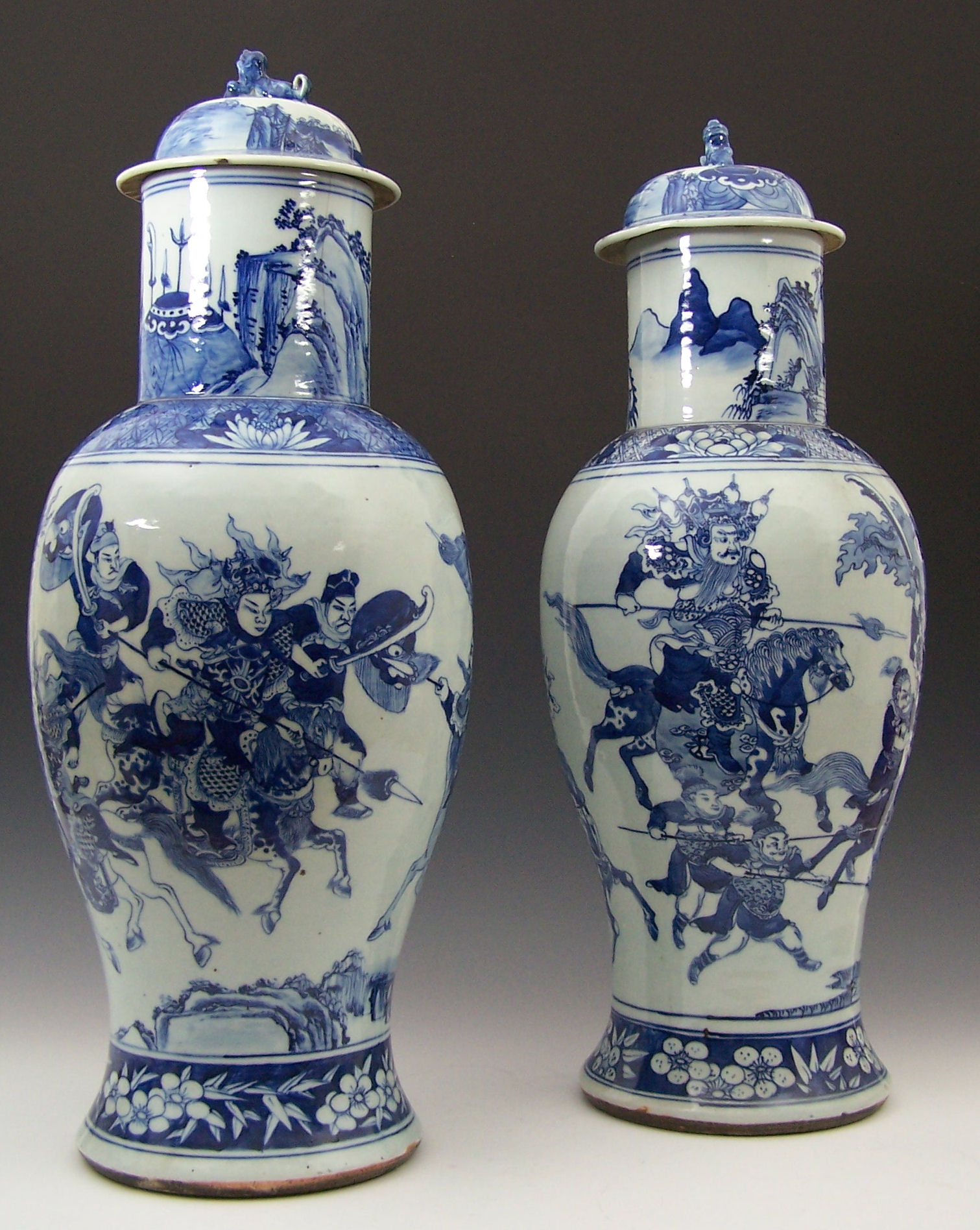 of baluster form, decorated to the neck with mountains and to the body with continuous scene of warriors, above a floral band (2)