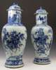 A large matched pair of 19th century Chinese blue painted vases and covers