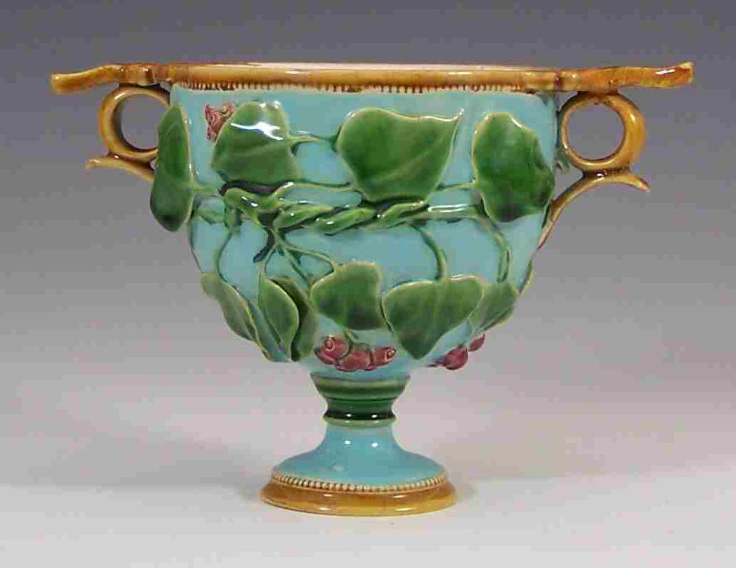 A Minton majolica twin-handled goblet