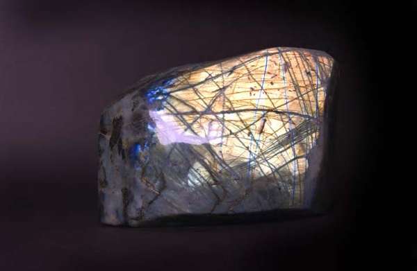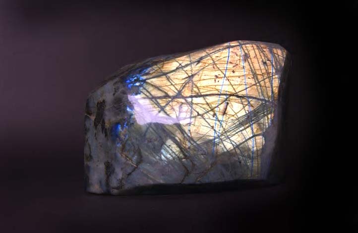 comprising: a large polished Labradorite freeform from Madagascar, (the highly iridescent stone displaying stunning flashes of colour), 16cm x 34cm; and an impressive large Malachite specimen from Democratic Republic of Congo, Africa, weight 8kg, 20cm x 27cm (2)