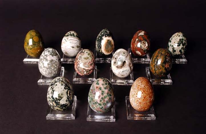 A collection of twelve Orbicular Jasper eggs