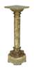 the revolving table above a plain column with gilt metal foliate capital and surbase with volute scroll corner details, on octagonal plinth base with brass feet