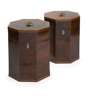 each of octagonal outline, with chequer stringing and satinwood banding, with brass carry handle and ivory escutcheon (2)