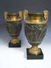 A pair of bronze patinated and giltmetal urns After the Antique